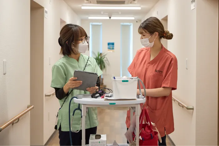 資格取得と経験を重ねた後には、訪問介護員へのキャリアアップを目指せます。ホスピス型住宅内にお住まいになっているご入居者さまのお部屋を訪問し、一対一の介護を提供します。