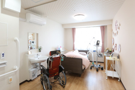 ナースコール、介護ベッド、テレビ回線、洗面台、エアコン、カーテン、冷暖房、ウォッシュレット付きトイレ、チェスト