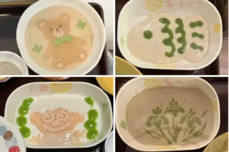 日々のお食事ではスタッフのアイデアでご希望に応じて可愛くデコレーションされたミキサー食を提供することもあり、日々の生活に彩りを添えます。