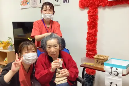 日々の何気ない会話からご希望を汲み取り、スタッフ全員で共有して形にするのがReHOPE 吹田の文化です。過去にはお食事が進まない時に好物のするめを噛んでいただく工夫をしたり、お子さまの入学式に立ち会いたいと願われたケースではお庭に桜を設営し記念撮影をご支援したことも。