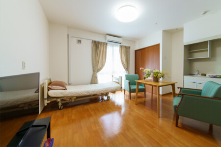 24時間看護・介護体制があり、がん末期や神経難病の医療依存度の高い方も安心してお過ごしいただけます。私たちが大切にしているのは、その方の人生を知ること。居室内にはご入居者さまの趣味などが書けるノートを設置し、ご入居者さまのことを知るきっかけとしてスタッフ全員で会話やケアのきっかけにしています。
