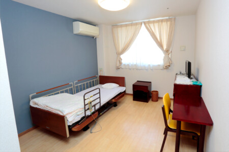 3階建ての建物内は落ち着いた雰囲気で、全室18㎡以上のゆとりある個室をご用意。各お部屋には冷蔵庫やタンス、椅子などの生活家具を備え付けており、お引っ越しの負担を軽減します。