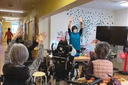 24時間の看護・介護体制はもちろん、ご入居者さま一人ひとりの方向性を話し合う「プライマリーカンファレンス」を重視しています。ADL(日常生活動作)の維持・向上を目指してチームで毎朝ケア方針を共有し、 施設の共有スペースを使った体操の時間も設けており、動ける方は皆で集まって体を動かすなど、活気あるケアを行っています。経験豊富なスタッフと若手が知識を出し合い、チームで提供します。「その人らしい」生活を支えるケアを実践しています。