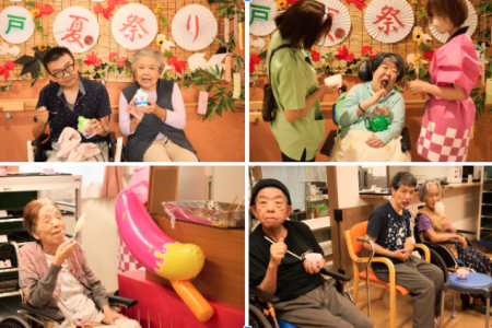 また、日々の彩りとして季節行事も大切にしており、夏にはスタッフ手作りの屋台が並ぶ夏祭りや、皆さまで楽しむ手持ち花火大会を開催しました。元調理師のご入居者さまの「最後にもう一度、納得のいく味を」という強い想いにお応えし、こだわりのレシピを共に再現したことも。決まった枠にとらわれず、その方ならではのご希望に真摯に向き合い、喜びや笑顔を届けられるよう工夫を重ねています。