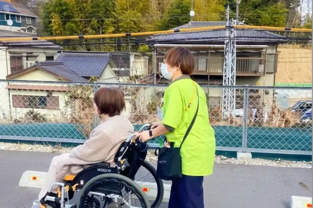 施設の周辺を散歩する風景