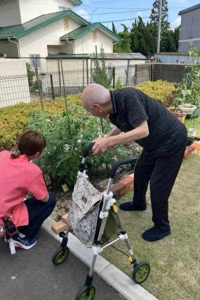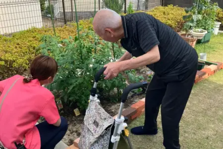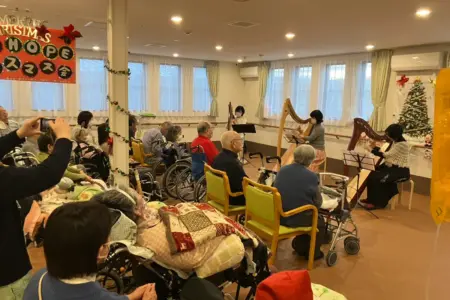 敷地内の畑では、季節ごとにトマトやキュウリなどの野菜やお花を育てており、ご入居者さまと共に水やりや収穫を楽しむのが恒例です。また、地元で人気のパン屋さんや乳製品飲料の移動販売が週に1度お部屋まで来てくれる移動販売は、皆さまの楽しみの一つです。ハープの演奏会や外国人講師によるアート制作など、ボランティアによる活動も定期的に行われており、感性を刺激する彩り豊かな日々を大切にしています。