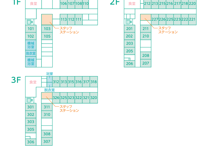 お食事は、食堂で召し上がっていただきます。
