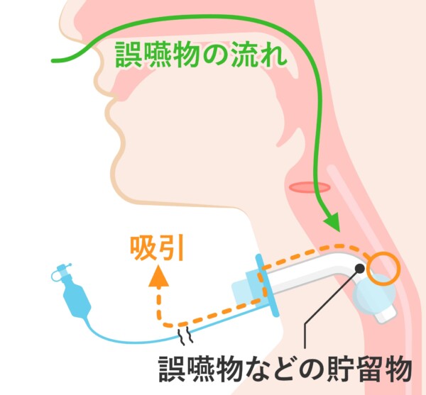 気管切開を行った患者さんは、本来備わっている「咳をして痰を押し出す力」が著しく低下しています。そのため、自力で出せない痰を機械的に吸い出す吸引処置が必要です。