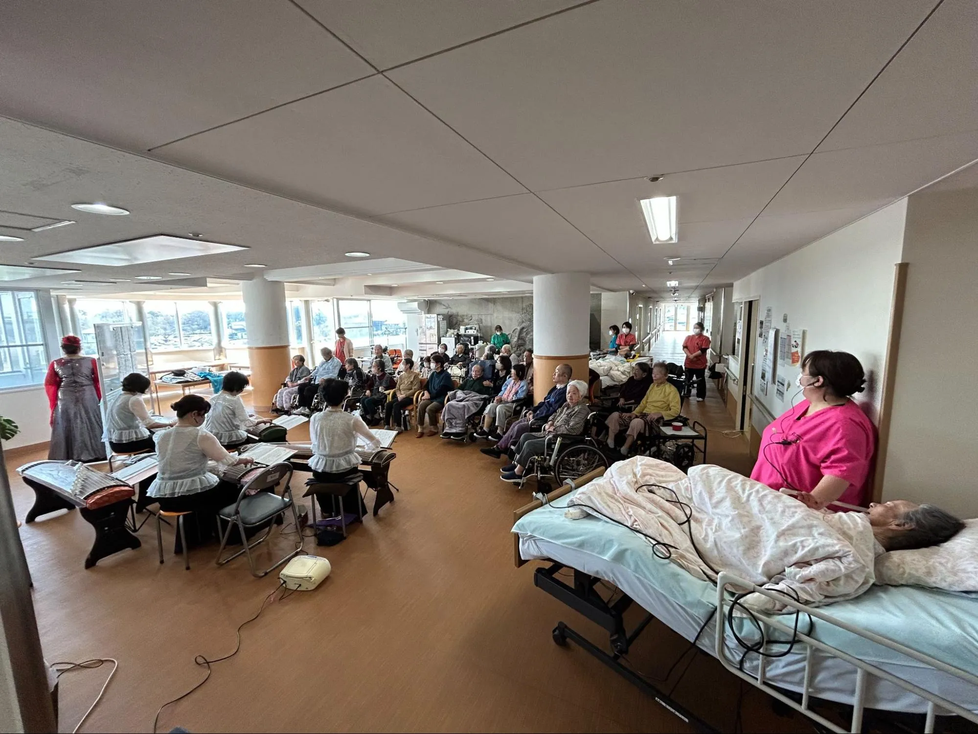 普段お部屋で過ごされることが多い方もホールへ足を運んでくださり、なんと2時間という長時間、座って集中して楽しんでいらっしゃいました!