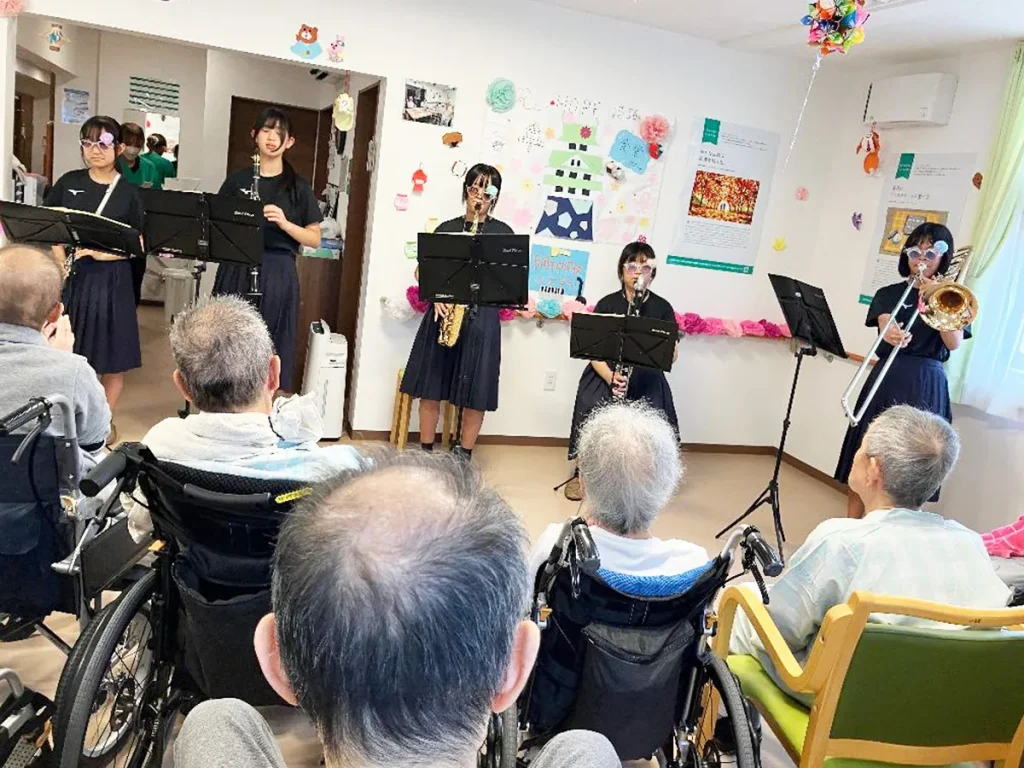 きっかけは、「生の音楽を聴きたい」というご入居者さまの声と、企画を担当したスタッフの娘さんが吹奏楽部に所属していたというご縁でした。今回は演奏会当日の様子をお届けします!