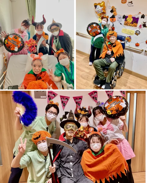 ReHOPE柏南増尾では、スタッフが魔女やジャックオーランタンモンスターなど、趣向を凝らした仮装でご入居者さまの居室を訪問しました。