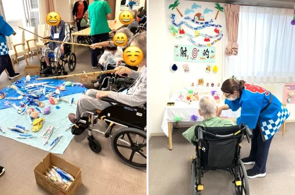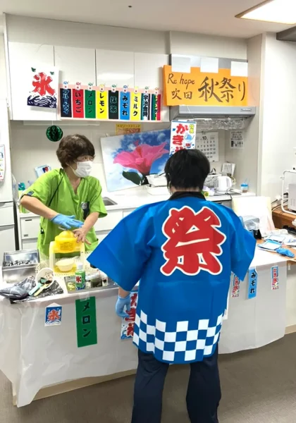 ご入居者さまは『かき氷なんて何年ぶりに食べたやろ』と嬉しそうに話され、面会に来られたご家族さまと嬉しそうに召し上がっておられました。