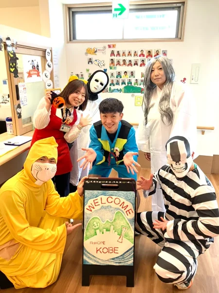 ReHOPE 神戸では、施設長や看護管理者、サービス提供責任者、介護管理者が妖怪アニメやお化けのコスプレで登場。ハロウィンパーティーを開催しました!