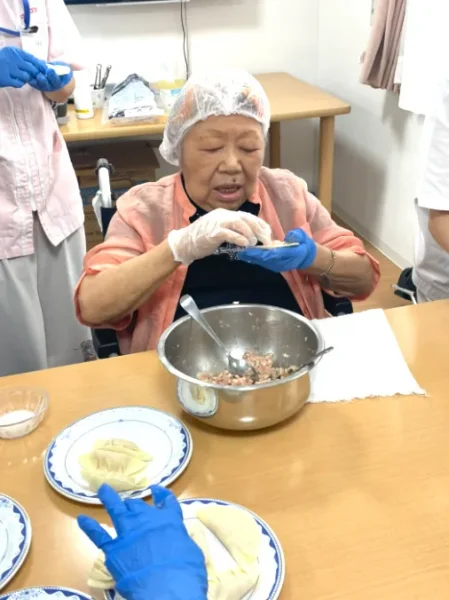 ReHOPE 墨田では、餃子が大好きなご入居者さまが集まり一緒に餃子づくりを楽しみました。