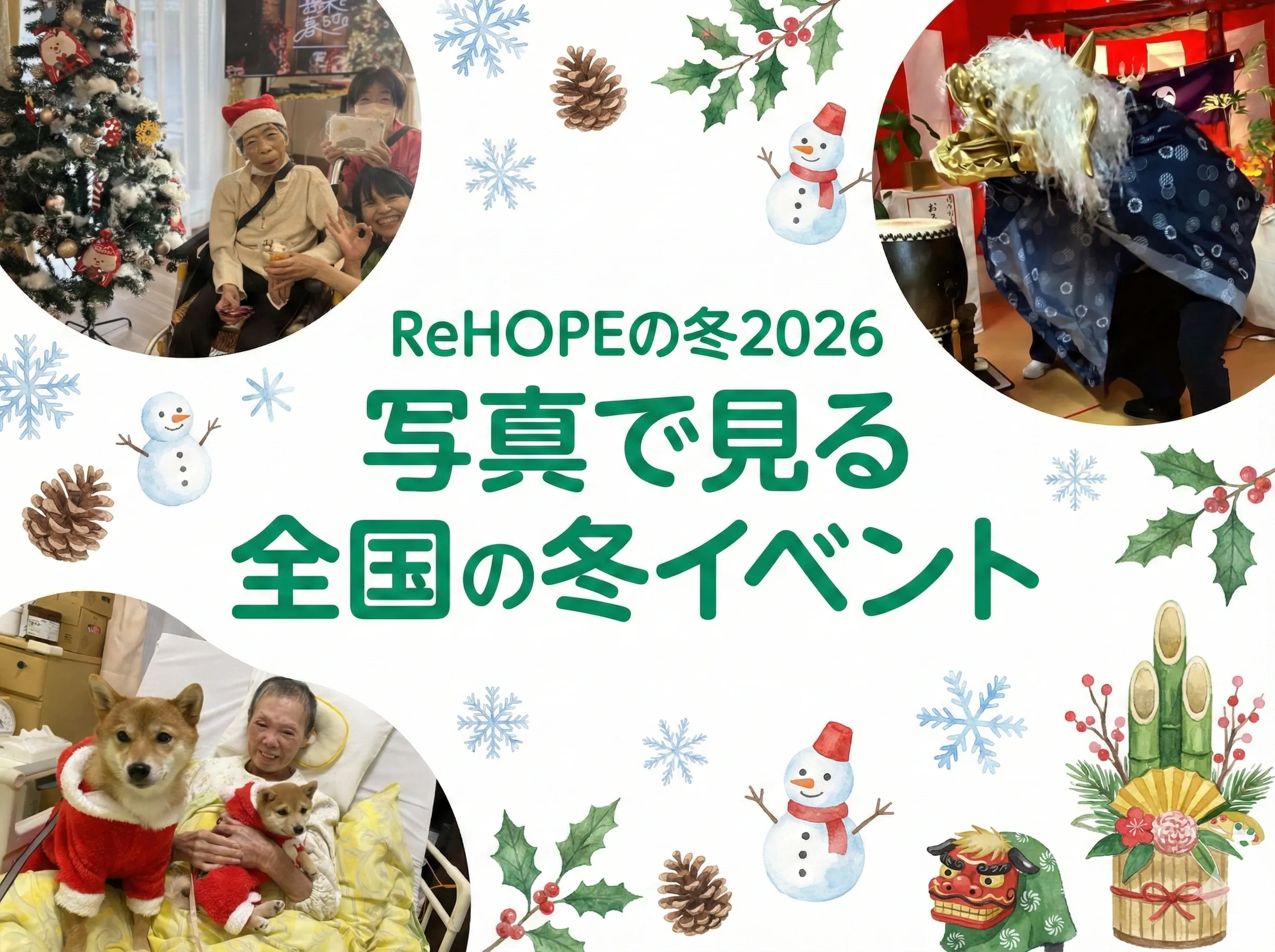 全国のReHOPEでは、寒さ厳しい冬も、心はぽかぽかと温かく過ごせるよう様々なイベントを企画しています。 本年も、ご入居者さまお一人おひとりの「希望」に寄り添い、笑顔あふれる毎日をサポートしてまいります。