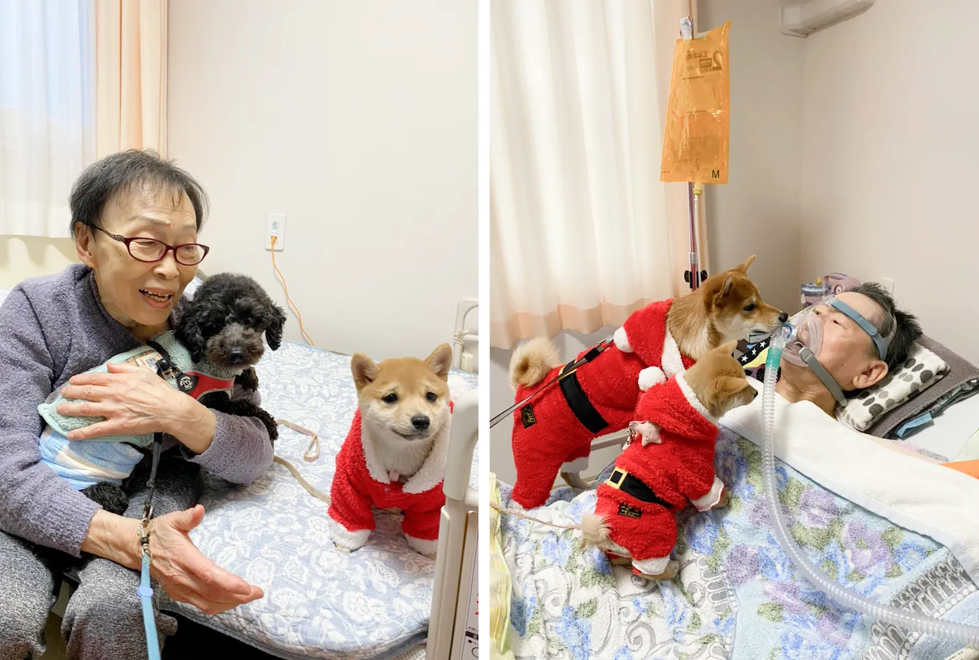 生き物が大好きなご入居者さまのために、なんと「犬サンタ」が居室を訪問しました!愛らしいサンタさんの登場に、ご入居者さまもこの日一番の笑顔に。動物とのふれあいが生むセラピー効果の凄さを、改めて実感する温かい1日となりました。